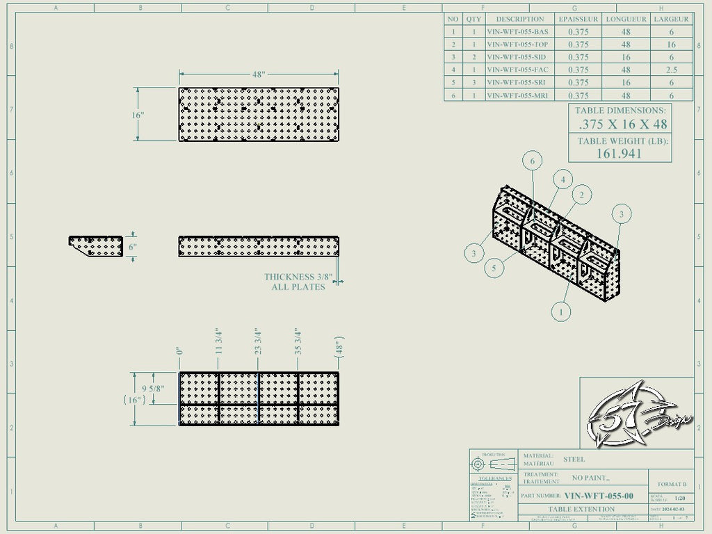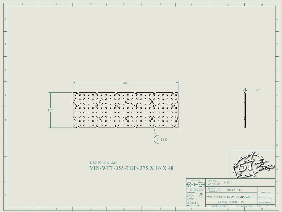 This is the complete package for a 1/2'' plate, 16'' wide, EXTENTION TABLE, 5/8'' holes & 2'' spacing welding fixture table with DXF files and PDF plans